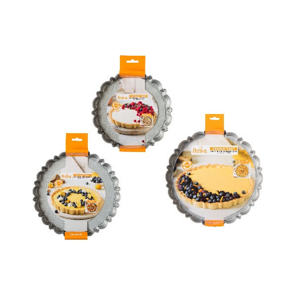Crostata tonda Design Tart di Decora da ø20 a ø30 cm: forma per crostata tonda con bordo festonato e fondo mobile alto 3 cm in metallo antiaderente di alta qualità