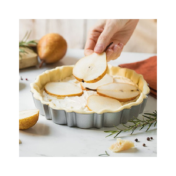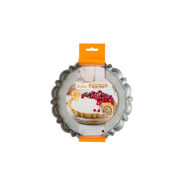 Crostata tonda Design Tart di Decora da ø20 a ø30 cm: forma per crostata tonda con bordo festonato e fondo mobile alto 3 cm in metallo antiaderente di alta qualità