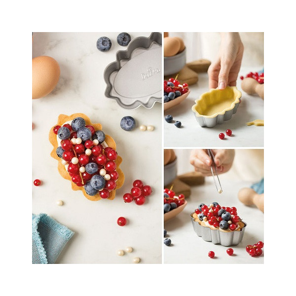 Design Tart Crostata Mini Ovale: formina crostata ovale con bordo festonato e fondo removibile da 7,5 x 11,5 cm h 3 cm in metallo antiaderente di alta qualità da Decora.