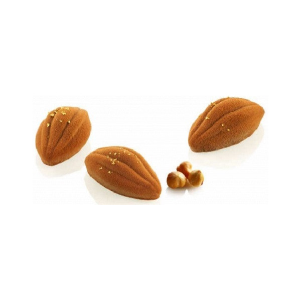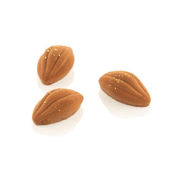Forma Stampo o Cavità: frutto a forma di chicco di cacao, ogni cavità ha una particolare bordatura per ottenere forma del bordo arrotondata, per effetto 3D.