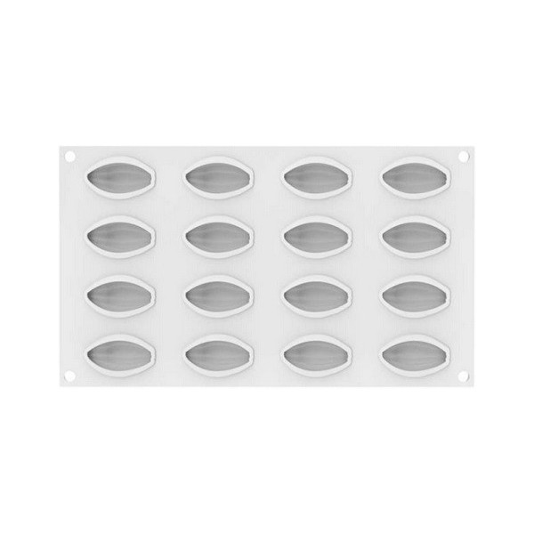 Cacao XS 12 Silikomart: stampo in silicone bianco, linea Top White, per 16 mini dessert, in versione cotta o fredda, 16 frutti dell'albero di cacao da 5x2,8xh1,9 cm e 12,5 ml