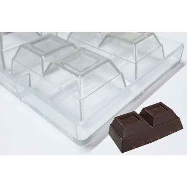 Stampo 4 Blocchetti Cioccolato di 2 Quadri dal peso 200 g in policarbonato.