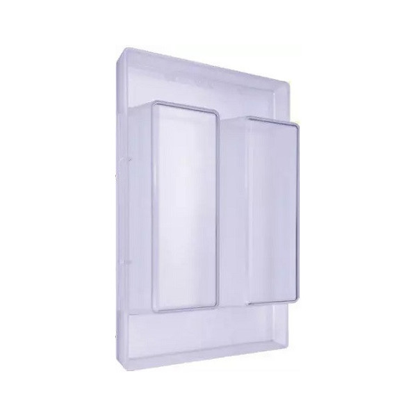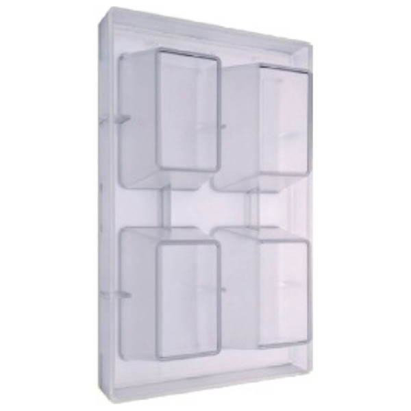 Blocchetto 2 quadri di cioccolato da 200 g: stampo in policarbonato per 4 blocchetti di cioccolato, da 2 quadri, pel peso di 200 g di 11,3x6,15xh3,73 cm, ideale per usi intesivi