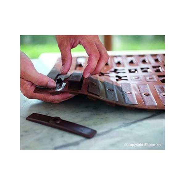 lo Stampo Cioccolato Silikomart è flessibile e antiaderente realizzato in 100 % silicone liquido. Può essere messo direttamente dal forno al frigorifero e viceversa. Lavabile in lavastoviglie.