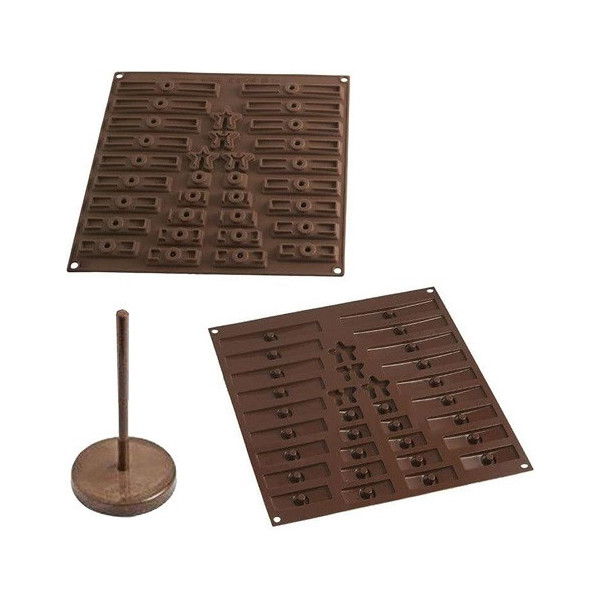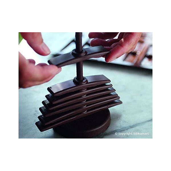 3D Tree Choc consente di realizzare, con un unico stampo, due alberi sia bidimensionale, posizionando i listelli di cioccolato uno sopra l'altro, sia tridimensionali incrociando le punte