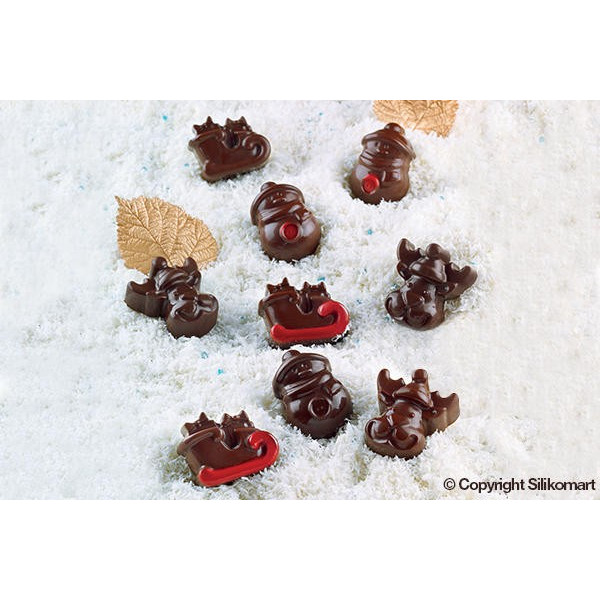 Forme Cavità / Cioccolatini: renna, slitta o pupazzo di neve a tema natalizio.