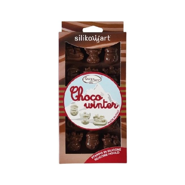 Stampo in silicone per 15 cioccolatini Choco Winter Silikomart con forme a tema Natalizio.