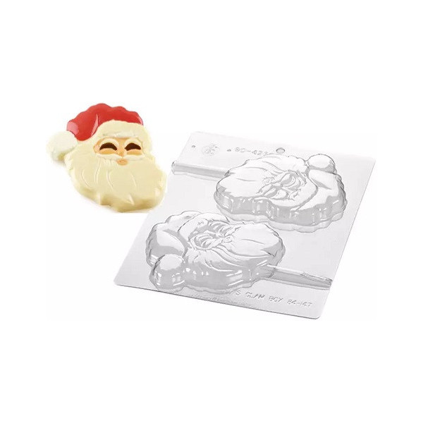 Stampo in policarbonato per soggetti cavi a forma di viso di babbo natale su stecco