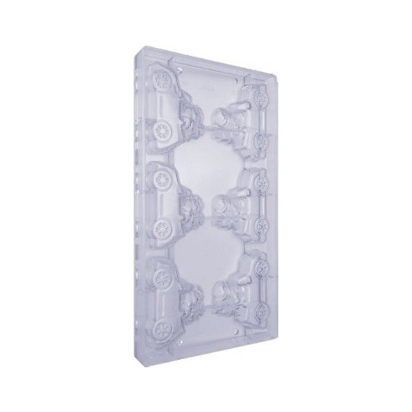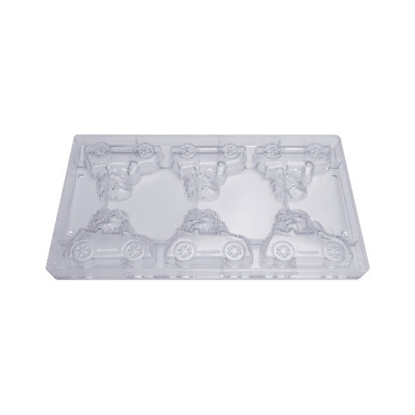 Stampo in policarbonato professionale vi permetterà di realizzare delle tavolette di cioccolato a forma di Auto con babbo natale nel modo più preciso. Ogni placca contiene 6 cavità da 101 mm di lunghezza e 76 mm di larghezza.