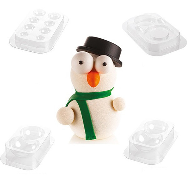 Kit Mr Snow Pupazzo di Neve di cioccolato: 4 stampi termoformati 3D da Silikomart