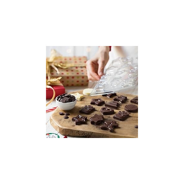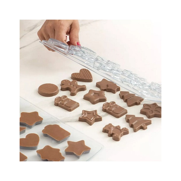 - 2 stampi termoformati con soggetti natalizi per realizzare 24 cioccolatini assortiti,