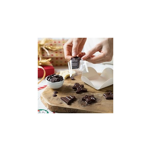 Ogni dettaglio del kit è studiato per facilitare la realizzazione e garantire un risultato elegante e curato, ideale per confezionare piccoli cioccolatini o dolcetti natalizi da regalare.