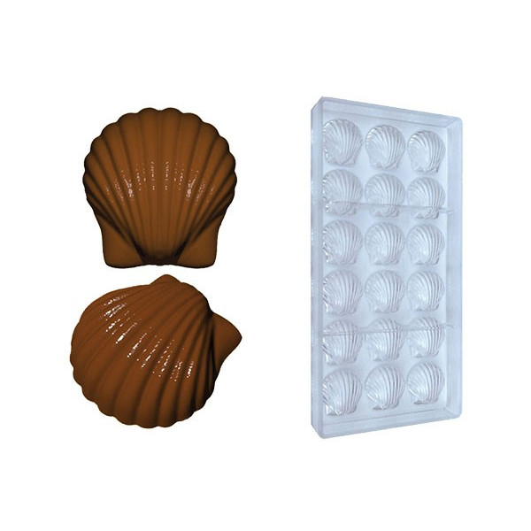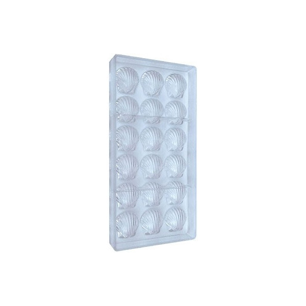 Stampo in policarbonato professionale vi permetterà di realizzare dei cioccolatini a forma di conchiglia nel modo più preciso. Ogni placca, contiene 18 cavità per praline da circa 10 g l'una