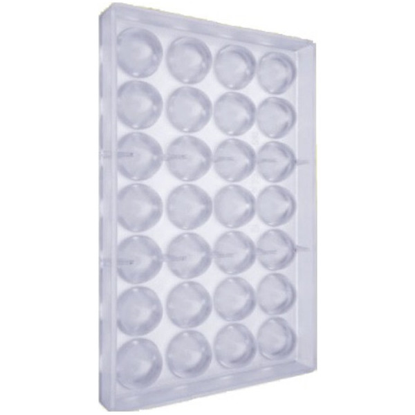 Stampo cioccolatini boero, tondo a cupola, da 10 g: stampo in policarbonato per cioccolato, per 28 cioccolatini a forma di boero di dimensioni ø 28 mm ed h 19 mm.
