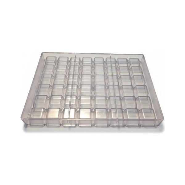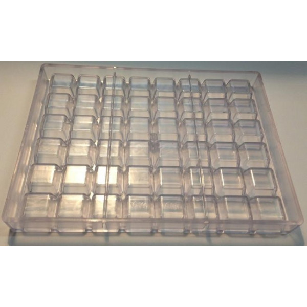 Stampo Cremino 7 g (2,5×2,5×H1,55 cm), 9 g (2,3×2,3×H1,85 cm) o 10 g (2,5×2,15×H2,1cm): stampo in policarbonato, professionale, con cavità per cioccolatini a forma di cremino liscio.