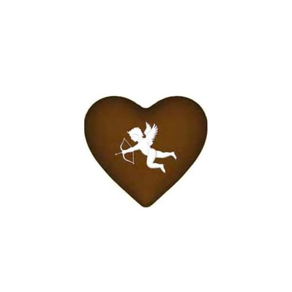 Stampo in policarbonato professionale vi permetterà di realizzare dei cioccolatini a forma di cuore con sopra un decoro a forma di cupido alato nel modo più preciso. Ogni placca contiene 10 cavità.
