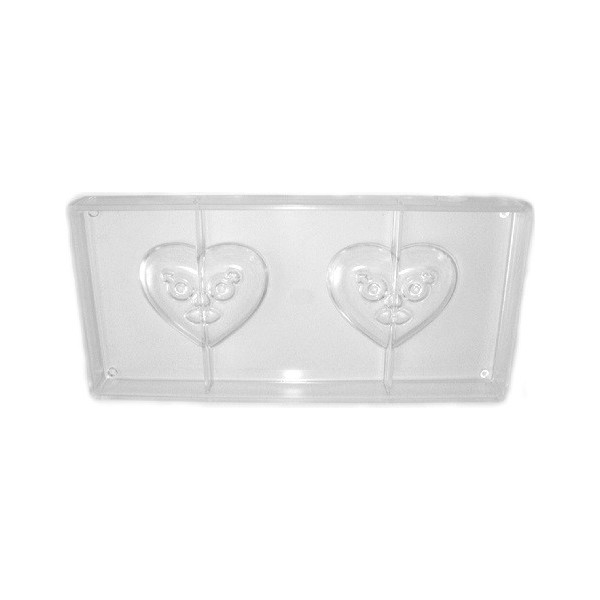 Stampo policarbonato 2 cuori cioccolato con decoro lui e lei 78,6X69,5 mm da 40 g: stampo accoppiabile per un cuore cavo di cioccolato con decoro lui e lei dal peso di 40 g ideale per uso intensivo