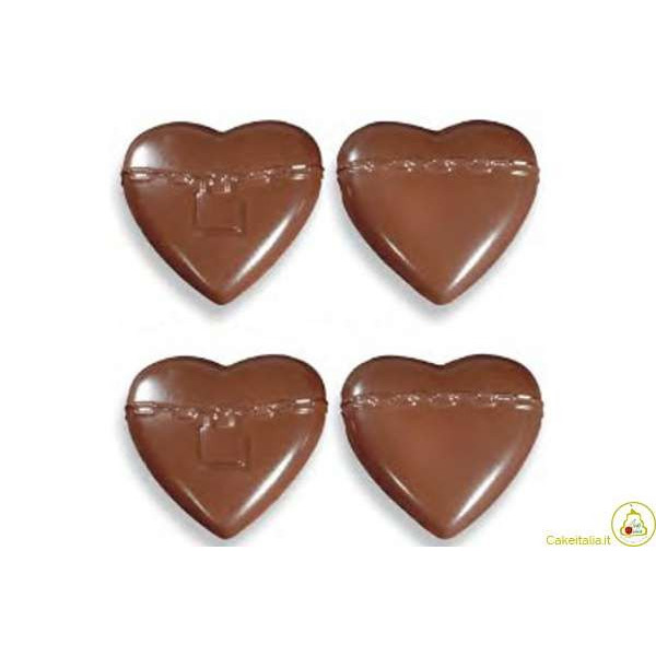 Stampo in policarbonato professionale vi permetterà di realizzare 2 (una fronte e una retro) cioccolati a forma di cuore con decoro lucchetto (o cuore incatenato) nel modo più preciso. Ogni placca, contiene 2 cavità da 7,8x8 cm