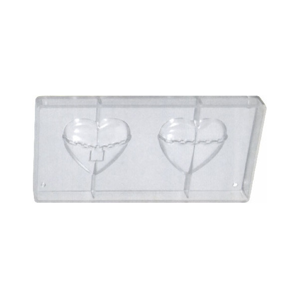 Stampo in policarbonato per 2 cavità a forma di cuore gigante con decoro lucchetto da 40 g.