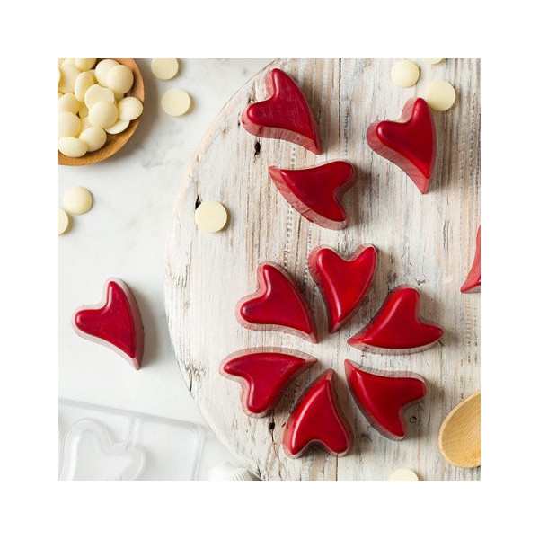 Stampo in policarbonato professionale vi permetterà di realizzare 12 cioccolatini a forma di cuore matto nel modo più preciso.