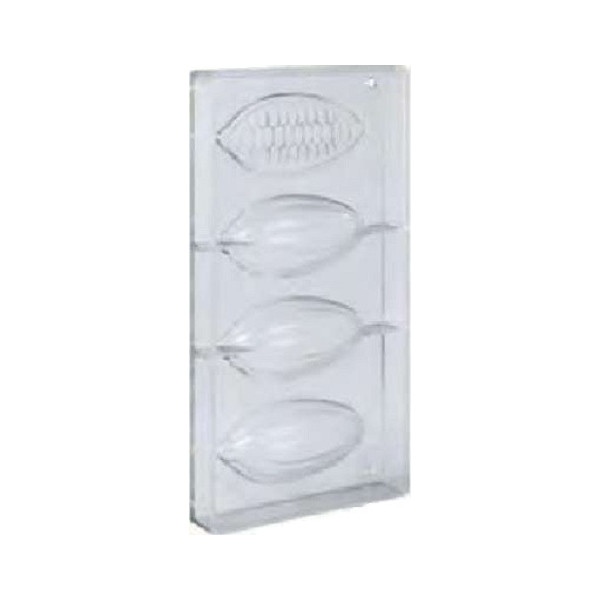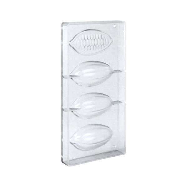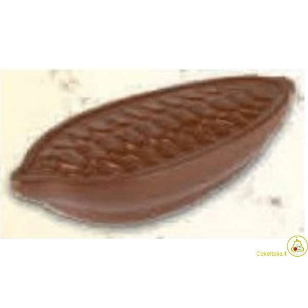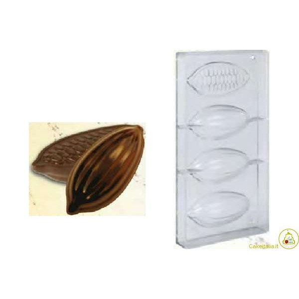 Cabossa di cioccolato 40 g, ogni placca contiene 4 cavità con la forma del frutto lunghe 98,7 mm e larghe 47,4 mm.