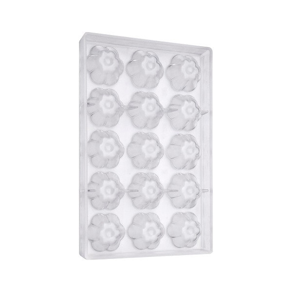 Stampo pirottini di cioccolato: diametro 48 mm, altezza 20 mm e peso pieno 23 g, in policarbonato, ideale per 15 cioccolatini da riempire con ganache, panna montata o creme in genere.
