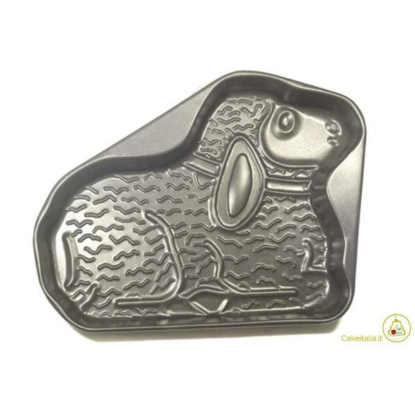 Stampo da forno per torta a forma di agnello, in alluminio antiaderente o teflonato, di dimensioni 35x28xh5 cm.