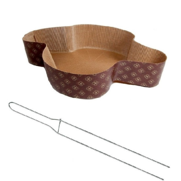 Kit spillone in acciaio da 50 cm con 5 stampi colomba artigianale in carta forno calandrata usa e getta o monouso per colombe da 750 g perfette, ad uso professionale.