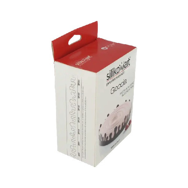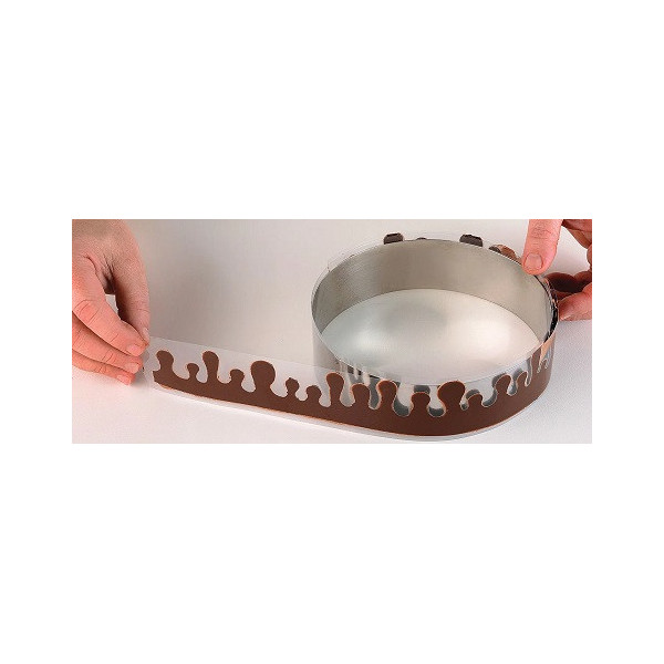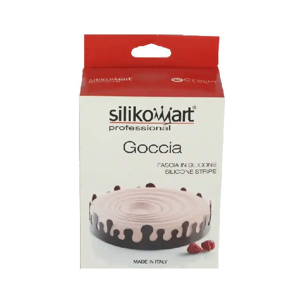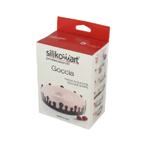 Goccia Silikomart: stampo in silicone per fascia h 4,5 cm da ø60 a ø26 cm. il kit comprende 1 stampo in silicone a fascia forma Goccia + 10 m di acetato + spatola.