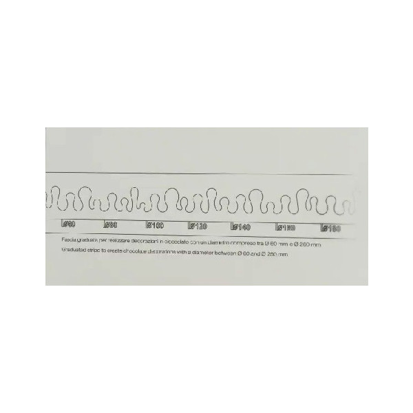 - Stampo Silicone a Fascia forma Goccia, sulla fascia graduata sono riportate le indicazioni per realizzare decorazioni con un diametro da Ø 60 mm a Ø 260 mm.