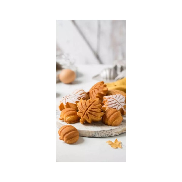Stampo Antiaderente Autunno Decora: stampo in alluminio pressofuso ed anti-aderente, ideale per cuocere 9 dolci monoporzioni, forme di dolci autunnali, 4 foglie e 5 zucche.