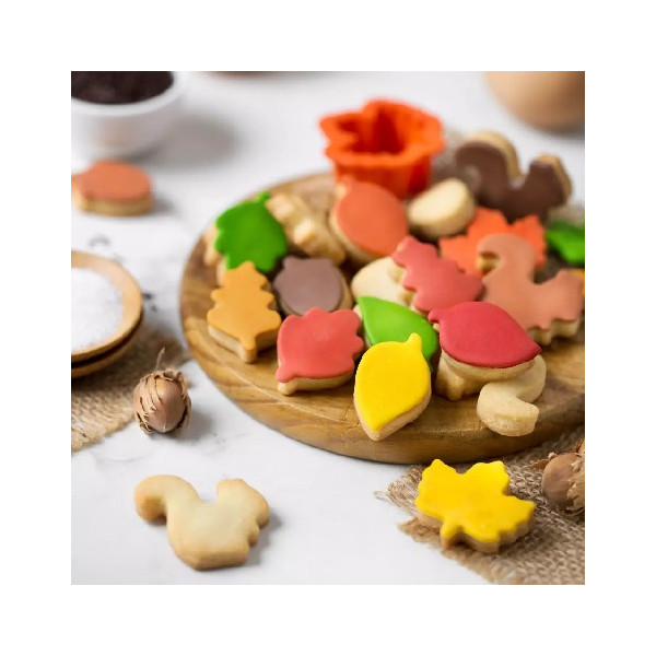 Piccoli stampini in plastica per creare mini biscotti a forme a tema autunnali da decorare con ghiaccia, cioccolato, zuccherini e tanta fantasia.