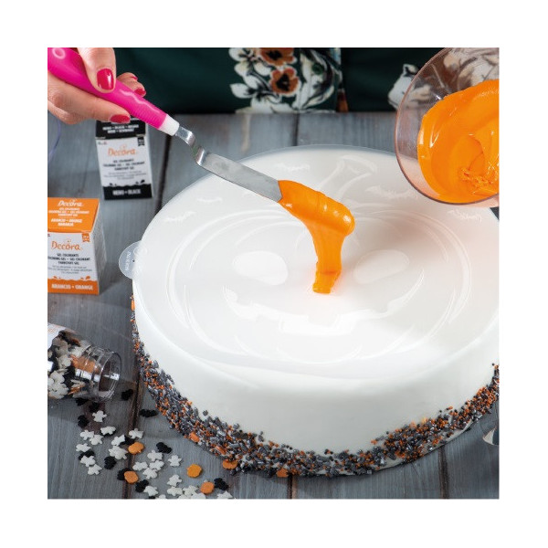 Mascherina o Stencil in plastica per alimenti con figura Zucca di Halloween con pipistrelli, di diametro 25 cm da Decora. Ideale per disegnare su torte e dolci.