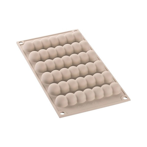 Oltre allo stampo per la base di 13 cm il kit comprende un secondo stampo dedicato alla preparazione del decoro o, perché no, di un inserto di piccole e delicate serie di sfere.