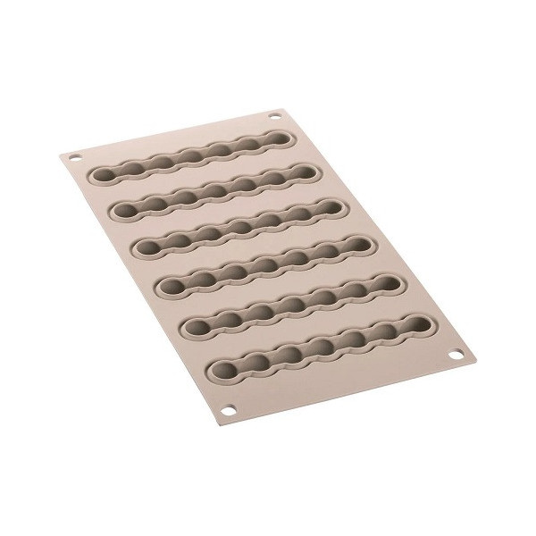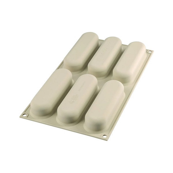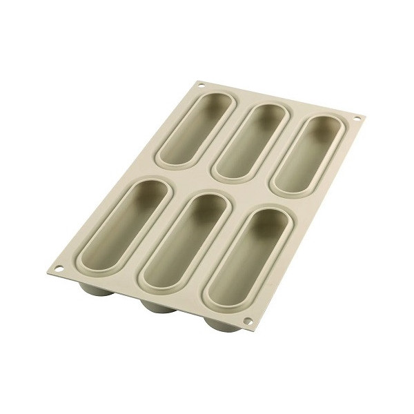 Stampo Air Plus 11 Eclair: 1 o 2 stampi 30x40 cm in silicone e fibra di vetro microforati per Eclair lunghi 125 mm, larghi 25 mm ed alti 5 mm, da Silikomart