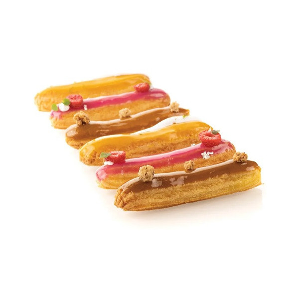 Il tappetino in silicone microforato Air Mat Éclair Silikomart (583×384 mm) è studiato per garantire una cottura uniforme e croccante di éclair e mini-éclair.