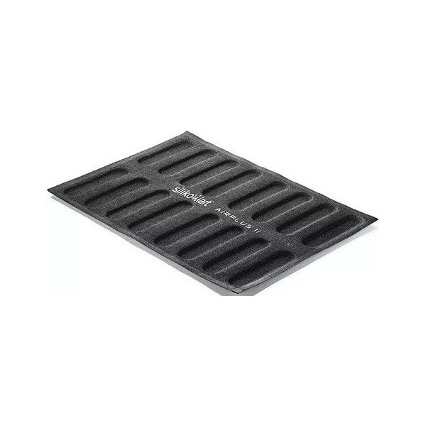 Stampo Air Plus 11 Eclair: 1 o 2 stampi 30x40 cm in silicone e fibra di vetro microforati per Eclair lunghi 125 mm, larghi 25 mm ed alti 5 mm, da Silikomart