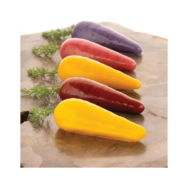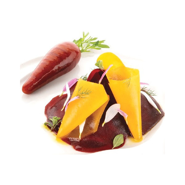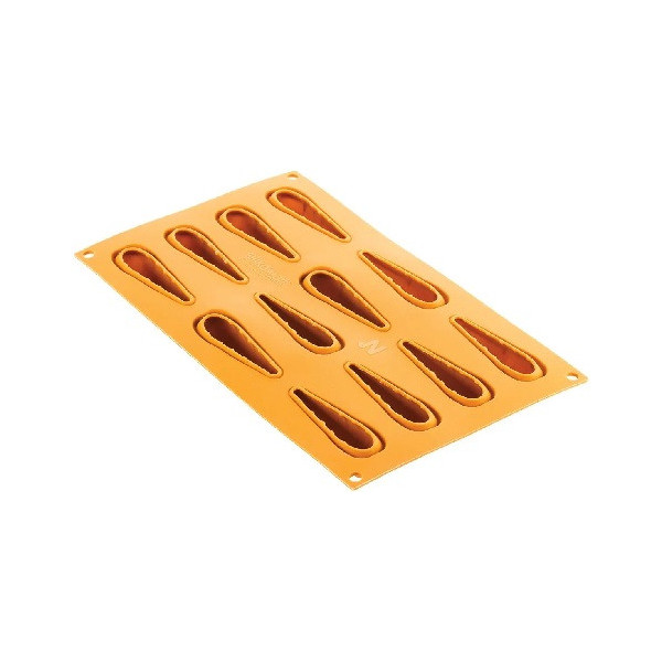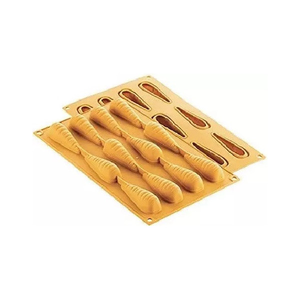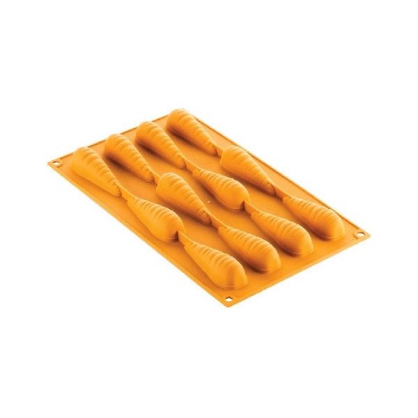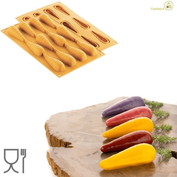 Stampo Carota 20 in Silicone giallo Silikomart Linea Naturae: 12 impronte che richiamano la forma naturale della carota, ideali per preparazioni sia dolci che salate in versione cotte o semifreddi.