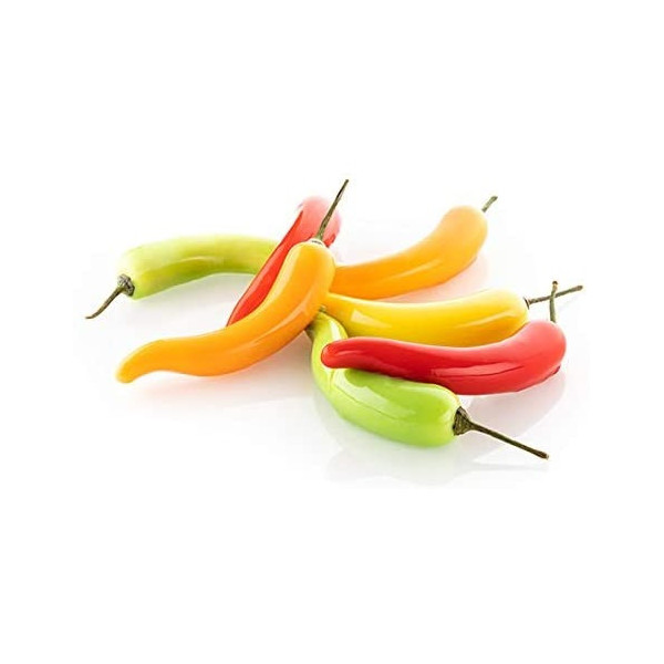 Stampo Peperoncino 13 in Silicone giallo Silikomart Linea Naturae: 12 impronte che richiamano la forma naturale dei Peperoncini, ideali per preparazioni dolci e salate, versione cotte o semifreddi.