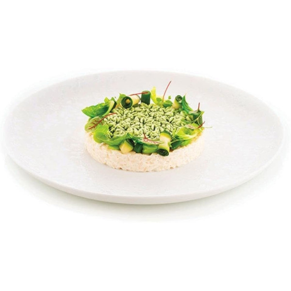 Stampo Erbetta, in Silicone giallo Linea Naturae di Silikomart: 8 impronte di diametro 10 cm, ideali per decori a prato fiorito di preparazioni sia dolci che salate in versione cotte o semifreddi.