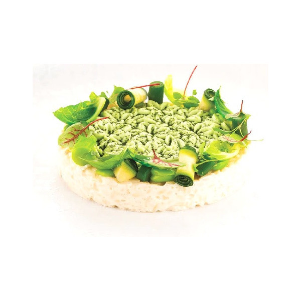 Stampo Erbetta, in Silicone giallo Linea Naturae di Silikomart, da 8 impronte di diametro 10 cm, ideali per decori a prato fiorito di preparazioni sia dolci che salate in versione cotte o semifreddi. Usala come decorazione sopra a piccoli dessert, pasticceria mignon e prodotti da forno, gelati, zucchero e cioccolato.