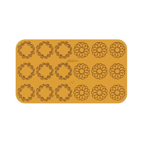 Stampo Corona, in silicone giallo Linea Naturae di Silikomart, per 18 impronte di 2 tipi di ghirlande ideali per decorare preparazioni sia dolci che salate in versione cotte o semifreddi.