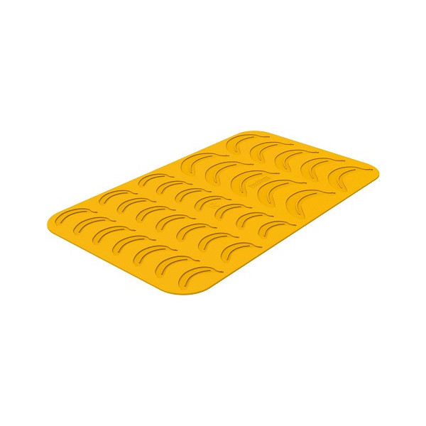 Stampo Banana, tappetino in silicone giallo Linea Naturae di Silikomart, per 31 impronte a forma di banana, che saranno capaci di stupire.