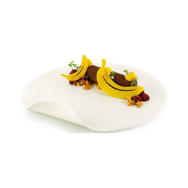 Stampo Banana, in silicone giallo Linea Naturae di Silikomart, per 31 impronte ideali per decorare preparazioni sia dolci che salate in versione cotte o semifreddi.