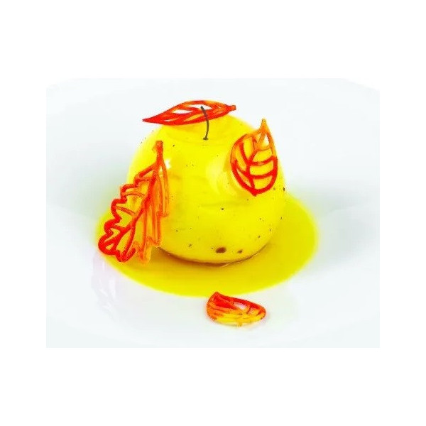 Taiga Silikomart: stampo in silicone giallo Linea Naturae, di 56 impronte di 3 tipi di foglie diverse inspirate alle foresta di conifere ideali per decorare preparazioni sia dolci che salate in versione cotte o semifreddi.