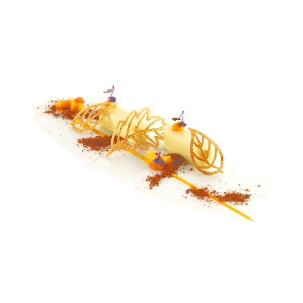 Stampo Piuma in silicone giallo Silikomart Linea Naturae: 20 impronte di 2 tipi che richiamano la forma naturale della piuma, ideali per preparazioni sia dolci che salate in versione cotte o semifreddi.