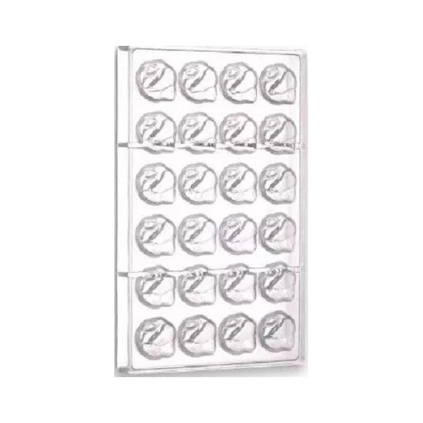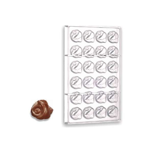 Stampo rosa di cioccolato da 11 g 3 cm: stampo in policarbonato professionale con 24 cavità per cioccolatini a forma di rosa dal diametro di 3 cm e peso 11 g.