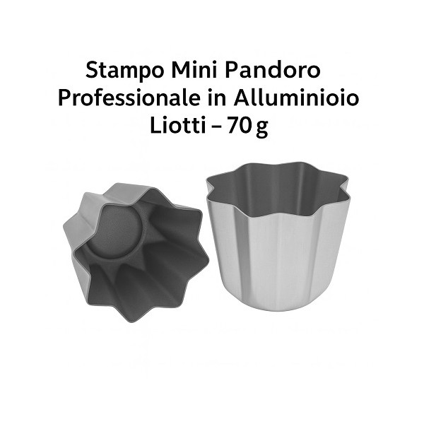 Stampo Mini Pandoro Linea Liotti da 70g (Monoporzione): Realizza facilmente piccoli pandori perfetti. La costruzione professionale in alluminio garantisce un'ottima cottura e sformo impeccabile.