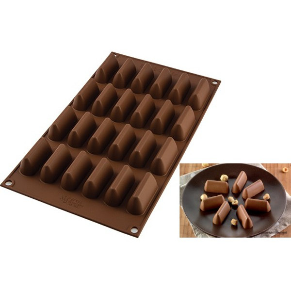 Lo stampo Chocogianduia o stampo gianduiotti è uno stampo in silicone per 24 cioccolatini a forma di gianduiotti da Silikomart linea cioccolato.