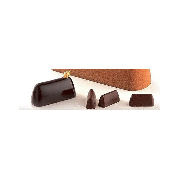 Stampo cioccolato Gianduiotto Trigono: stampi in policarbonato per 32 cioccolatini a forma di gianduiotto tridimensionale di dimensioni 37 x 20,5 h 22,5 mm.